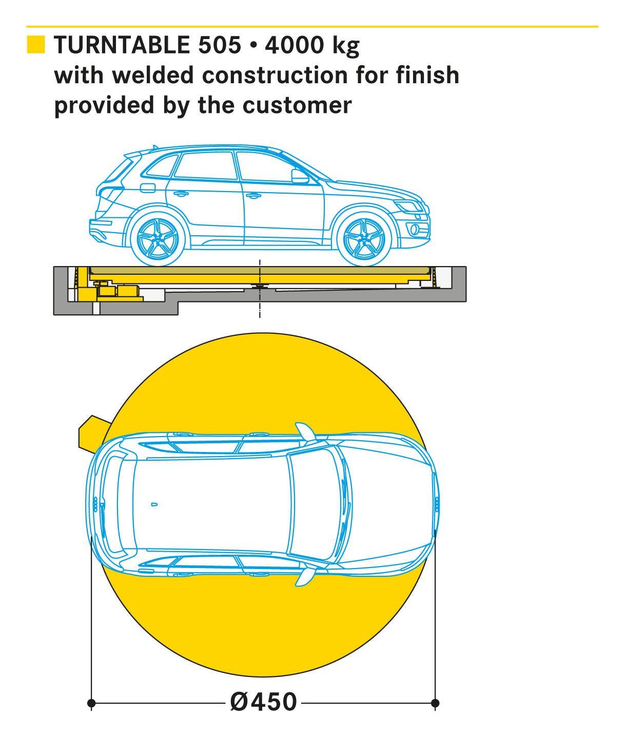 In all areas where it is only possible to drive forwards or where place for parking manoeuvres is stricted, the vehicle is simply rotated into the required parking position with Turntable 505. Turntable rotation constitutes the ideal solution in the event of narrow and limited parking space entries and exits.