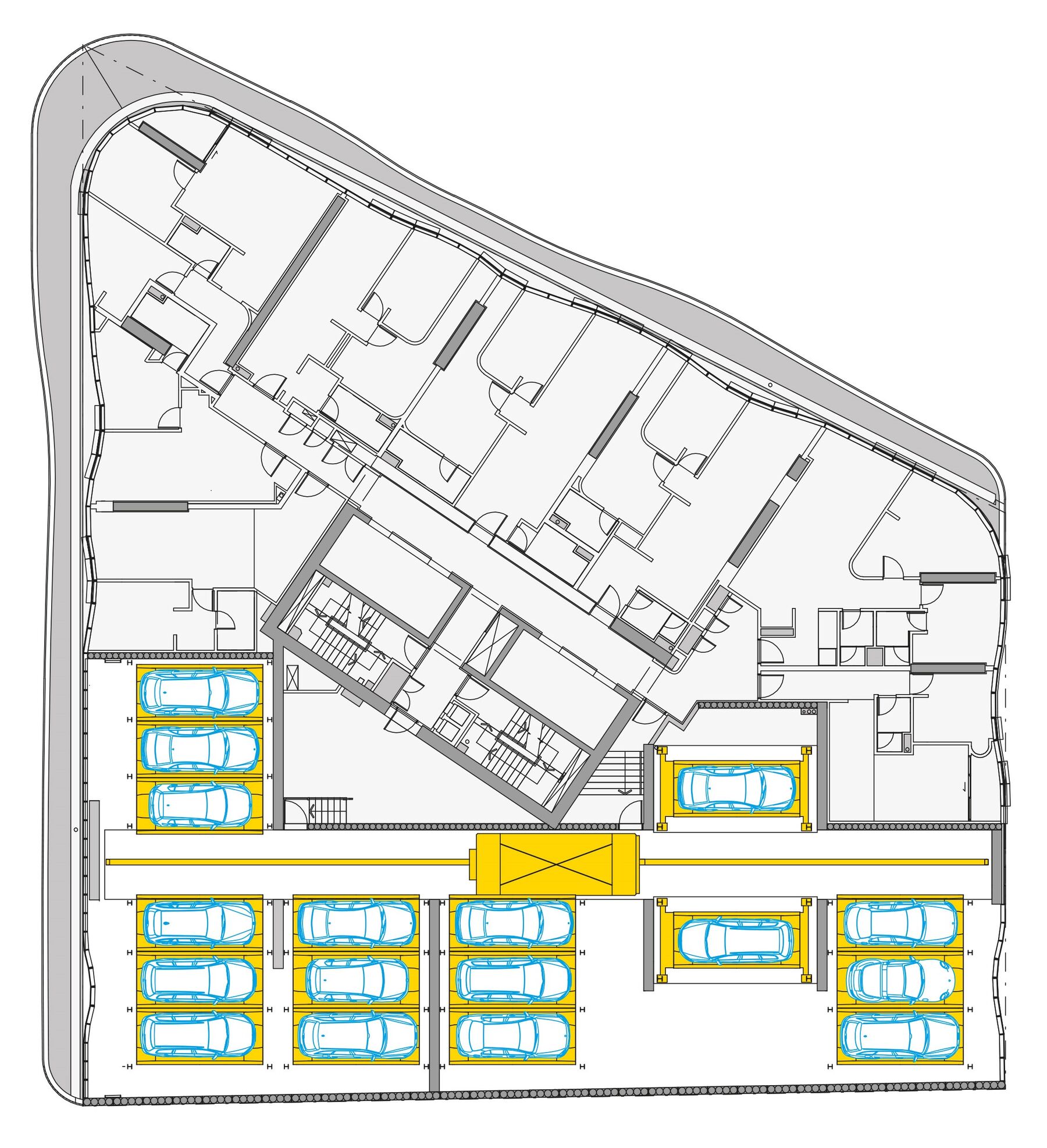 In the second-largest city of Australia the well-known architect's office Elenberg Fraser has built another extraordinary skyscraper. The 153 m high skyscraper Shadow Play is a first-class residential building, which comes with a beautiful design and luxurious comfort. You can find more than 630 apartments, a spa centre, swimming pool on the rooftop, many shops, restaurants and bars in the tremendous project. Additionally there is a high-tech fully automated parking system for 150 cars which can be stored safely, comfortable and very space-saving. On approx. only 450 sqm ground area the cars are stacked on 11 parking levels in a high rack.
