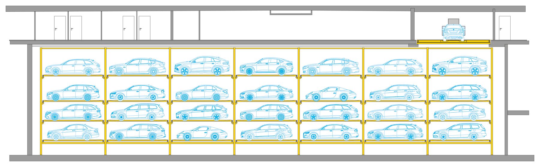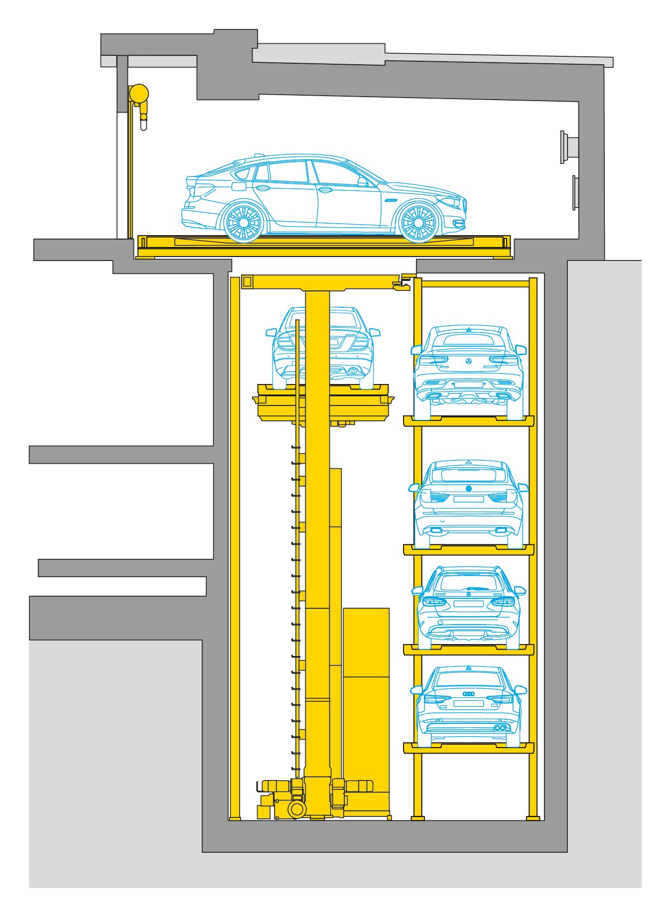 Making space under a listed building: automated parking in the former US Embassy in Oslo