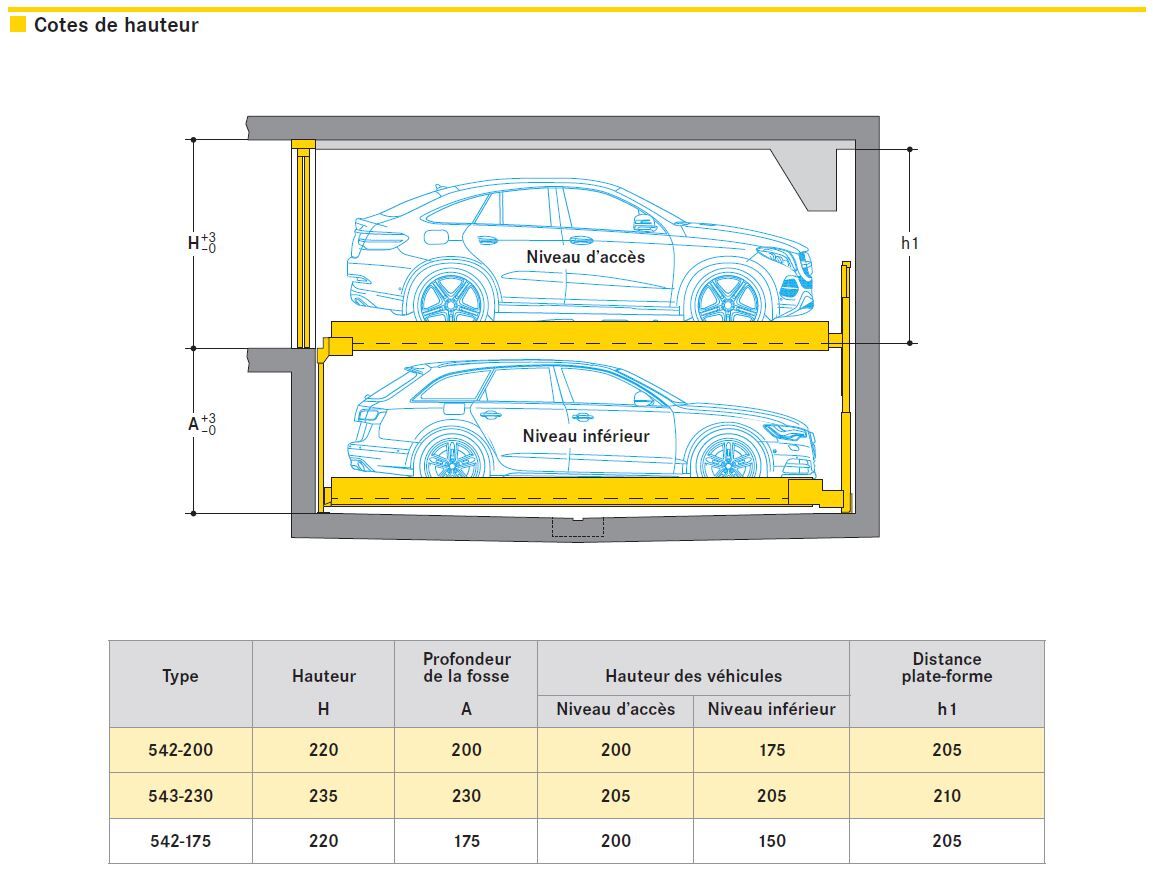- permet le stationnement de SUV sur les places de parking supérieures avec une faible hauteur sous plafond de 220 cm seulement