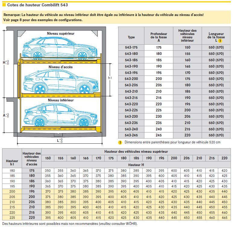- Tous les nouveaux Combilifts sont extrêmement polyvalents car nous pouvons créer une nouvelle hauteur tous les 5 cm pour garer des véhicules d'une hauteur de 150 cm à 220 cm.