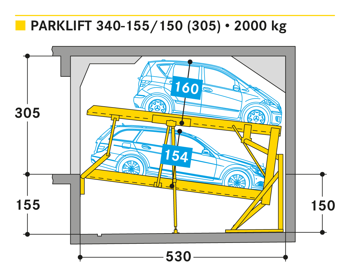 - largeurs de places de stationnement jusqu'à 270 cm et 500 cm et charge par place jusqu'à 2000 kg