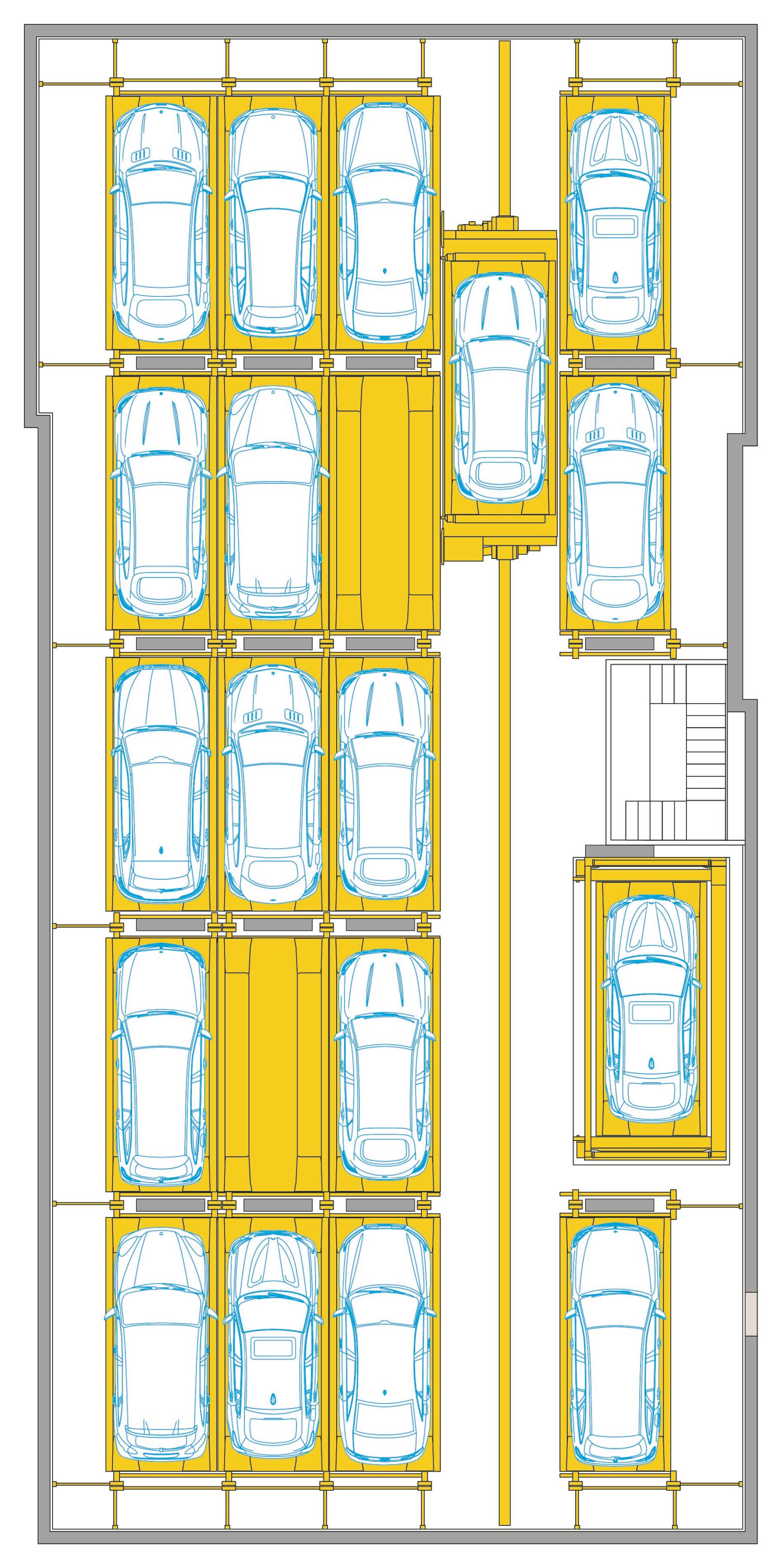 - 2 niveaux de parking avec 4 rangées de parking chacun